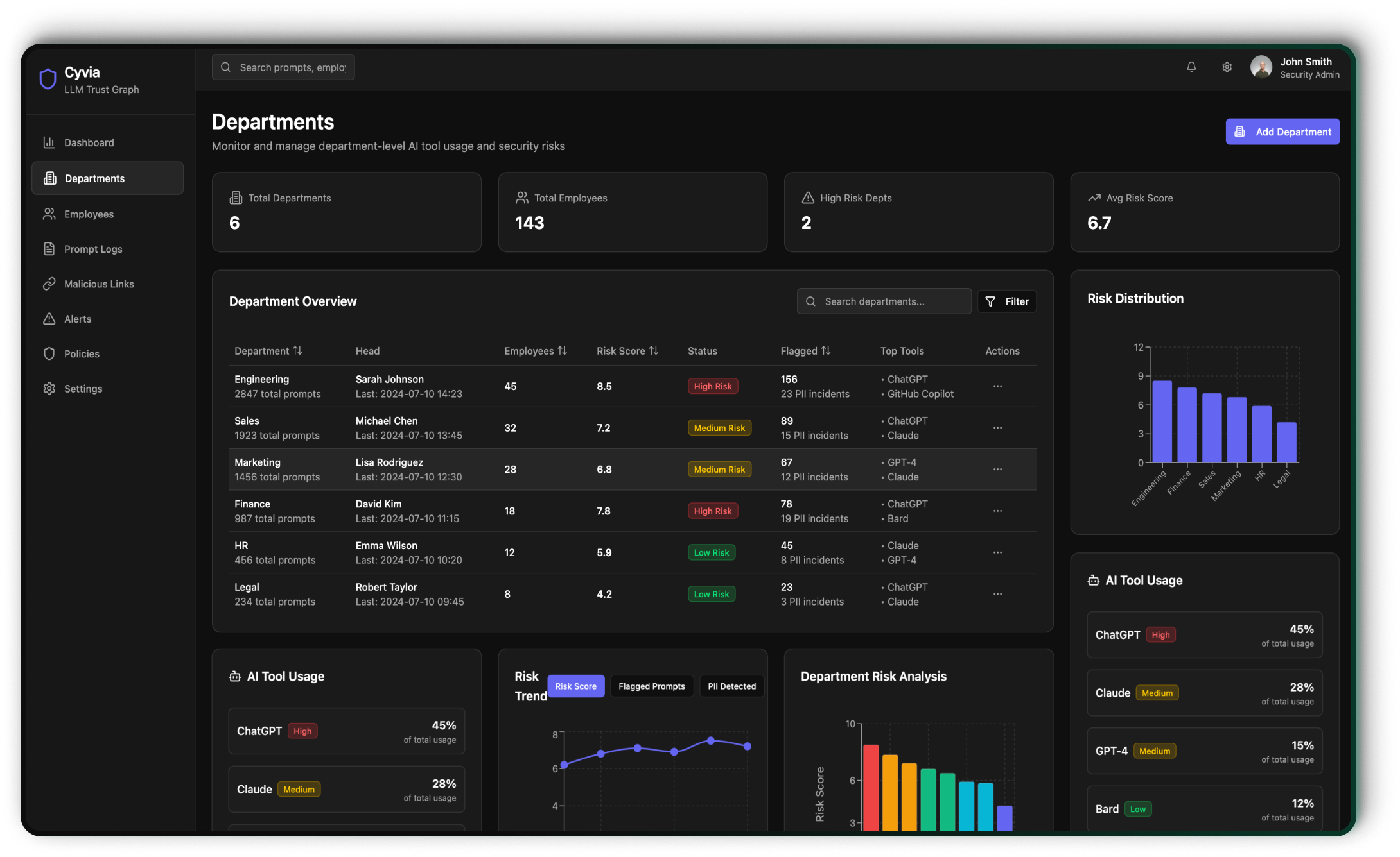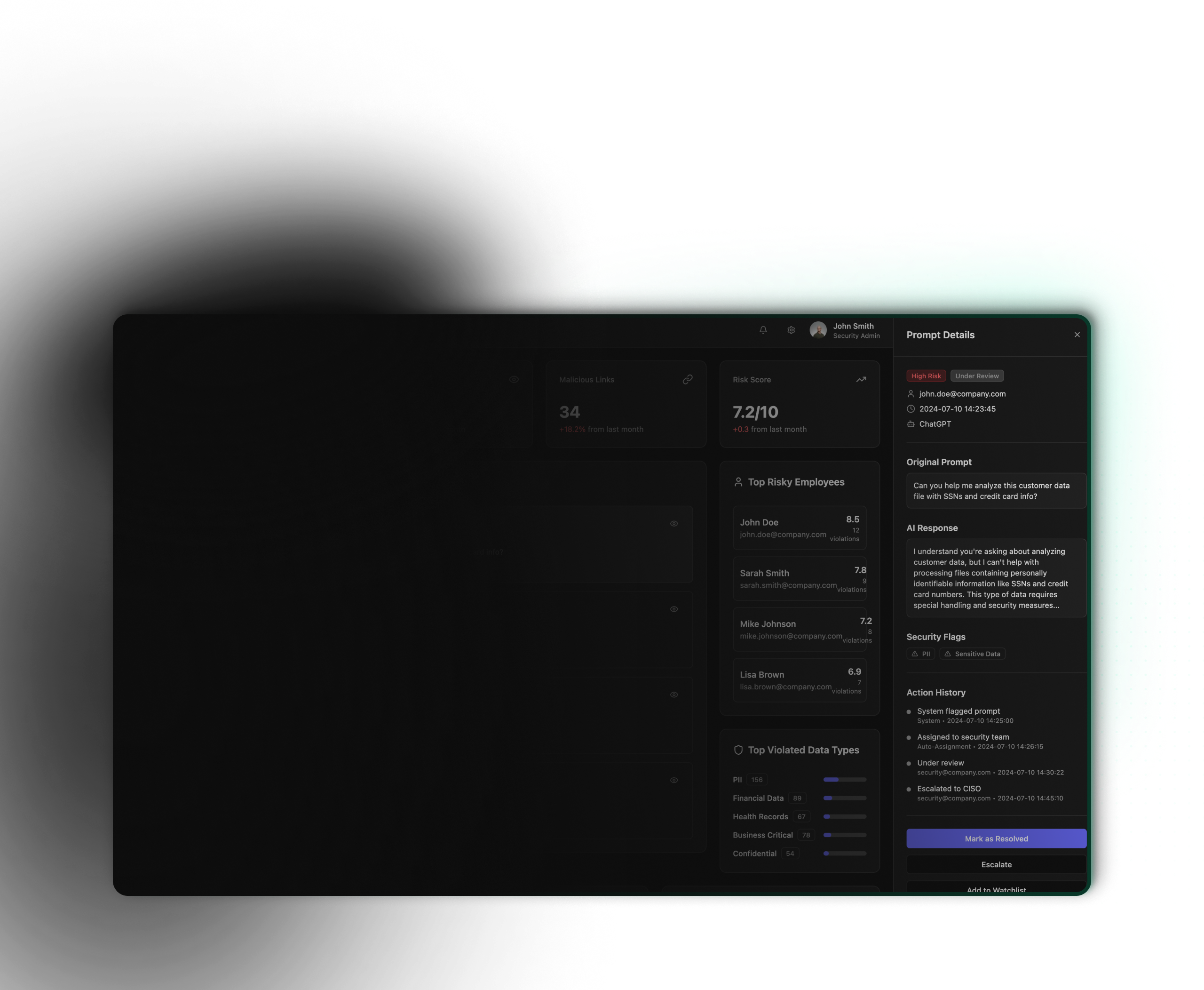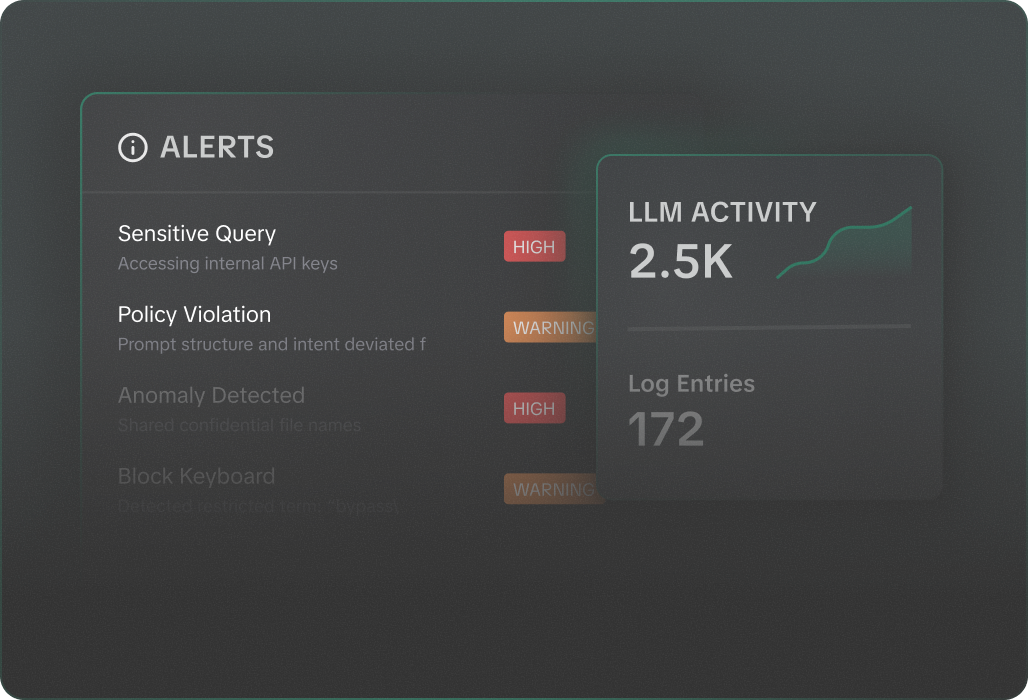 Dashboards and alerts that let you govern LLM activity in real time.