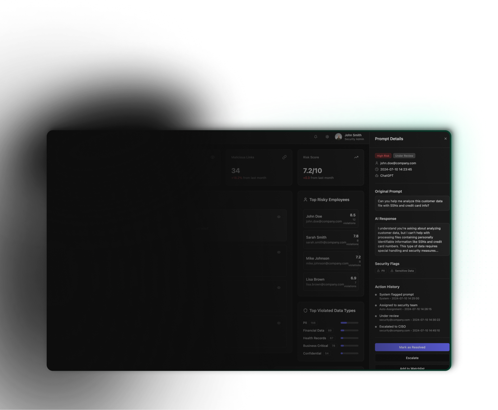 Dashboards and alerts that let you govern LLM activity in real time.